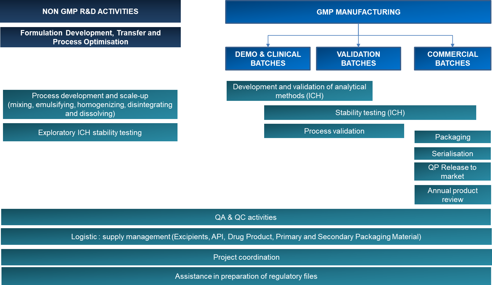 Spécialisés dans le développement et la fabrication de produits pharmaceutiques à base de petites molécules, nous proposons une large gamme de formes galéniques adaptées à vos besoins spécifiques.
